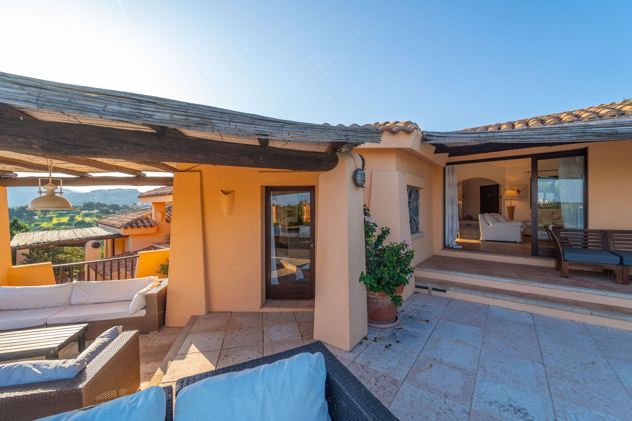 Gli ambienti della villa sono progettati per offrire un equilibrio perfetto tra design e funzionalità. Grandi terrazze collegate alle zone giorno e notte creano una continuità tra interno ed esterno, mentre il cuore della proprietà è un suggestivo patio in stile spagnolo, pensato per momenti di condivisione e relax.