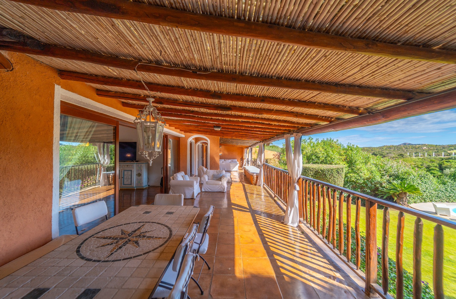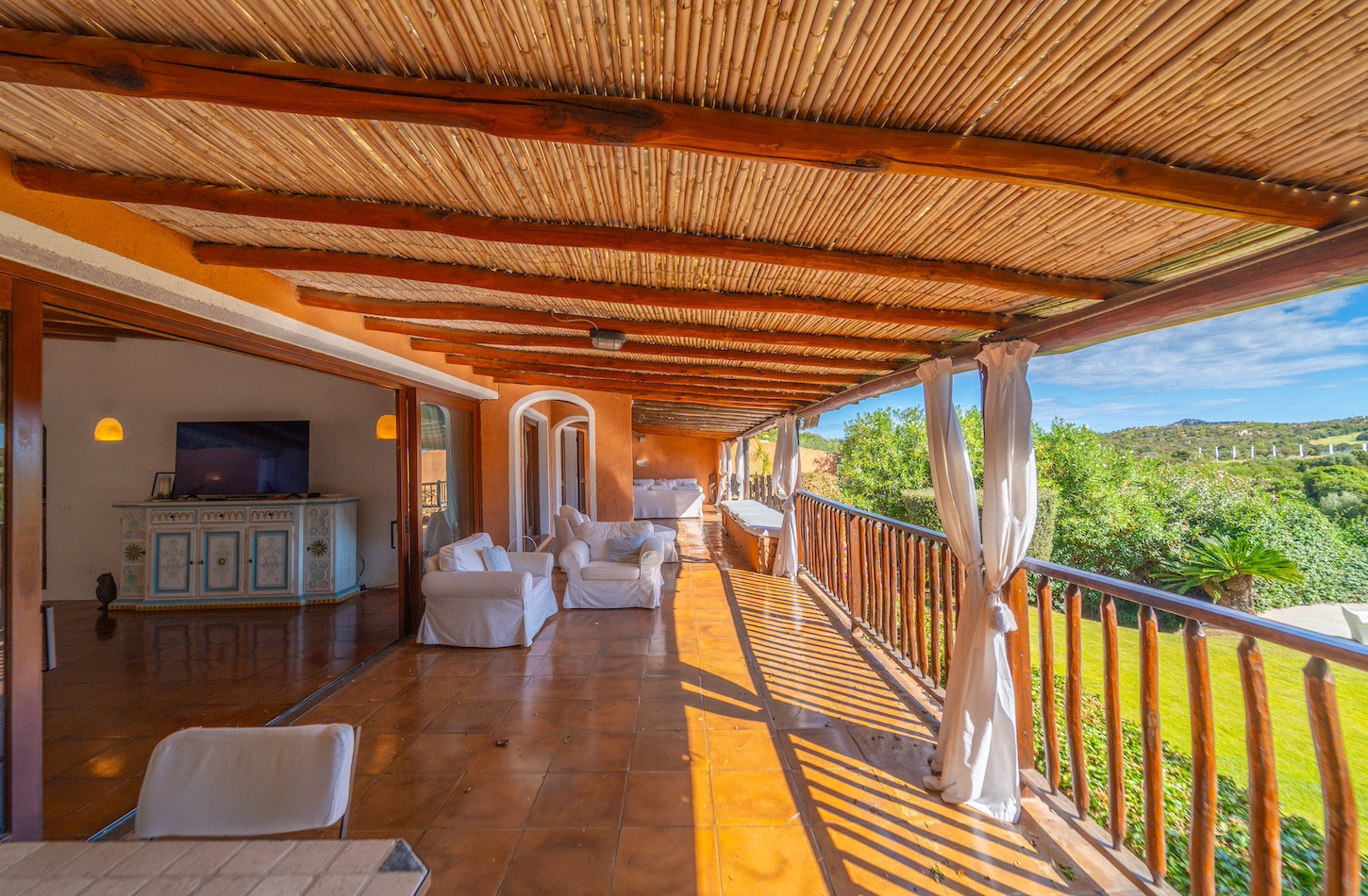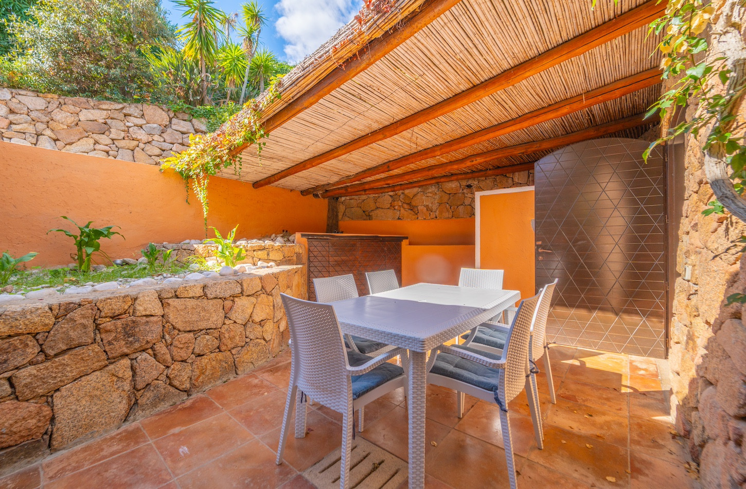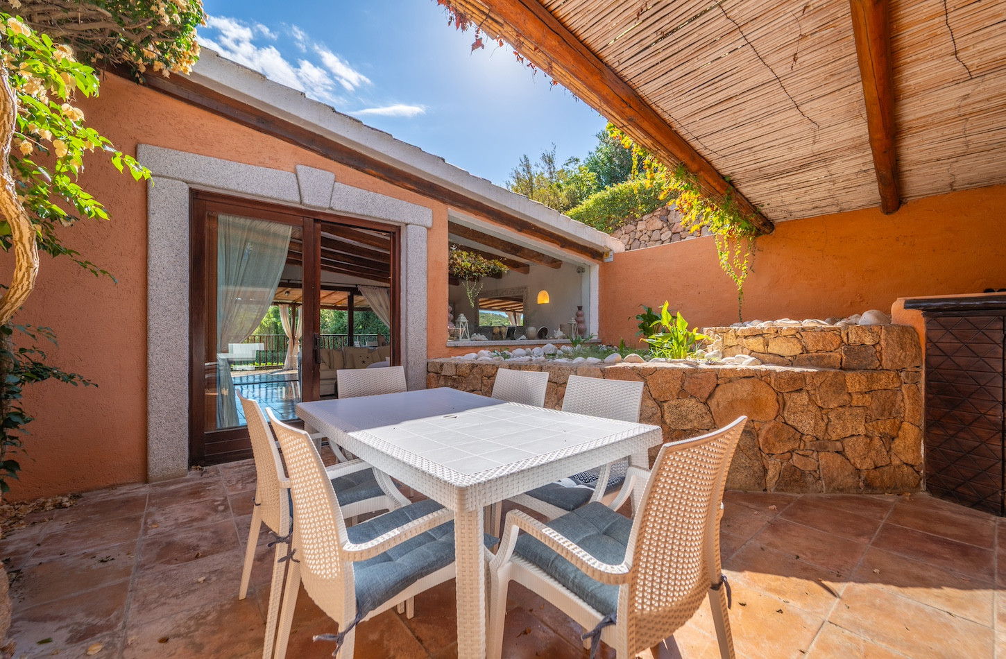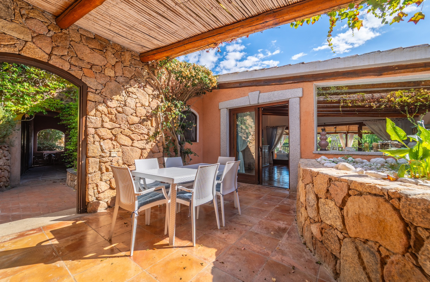 All’esterno, una piscina privata a ossigeno attivo e riscaldata vi accoglie in un’oasi di quiete immersa nel verde, perfetta per lasciarsi andare al relax dopo una giornata tra mare e golf. A completare gli spazi all’aperto, confortevoli zone dedicate al riposo e un comodo parcheggio all’interno della proprietà.