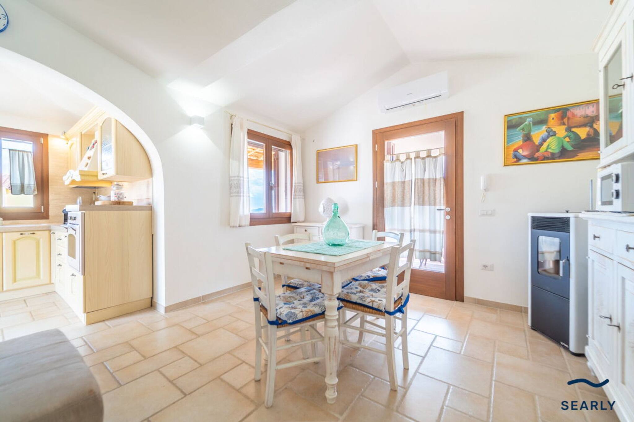 The villa is available for both complete rental (both floors) or individually, ensuring maximum flexibility and convenience. Inside, it can comfortably accommodate up to 8 people, with the possibility of using two sofa beds for additional space.