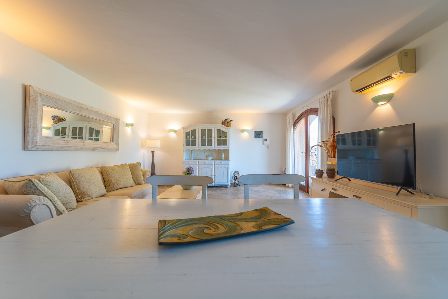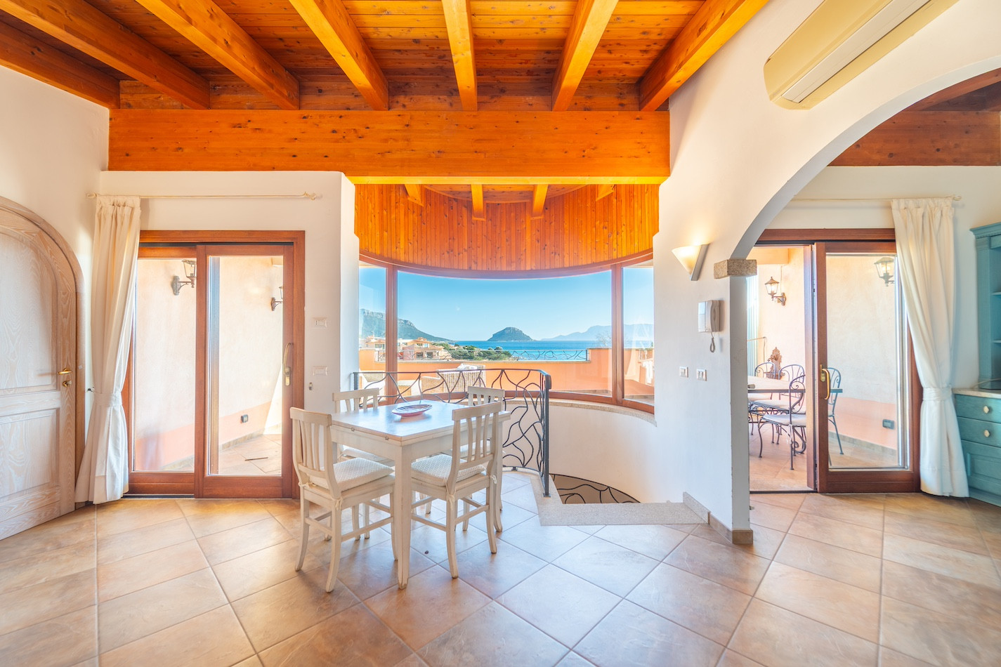 Inserted in an exclusive residential context of prestigious villas only, this splendid two-family villa directly overlooks the beach of Baia Caddinas, one of the most fascinating locations in Golfo Aranci. Distributed over three levels, the property boasts spacious areas and an extraordinary 180-degree sea view, extending from Cala Moresca to the promontory of Capo Ceraso, offering a unique panorama of the Sardinian sea.
