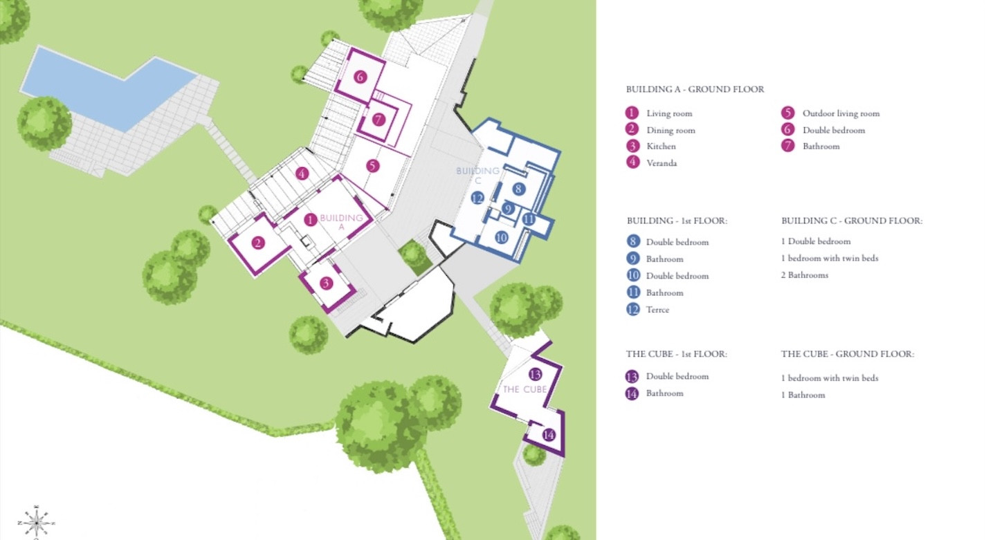 The villa can accommodate up to 14 people, ensuring spacious areas and maximum privacy for large families or groups of friends. It has 7 bedrooms and 7 bathrooms, all furnished with taste and attention to detail.